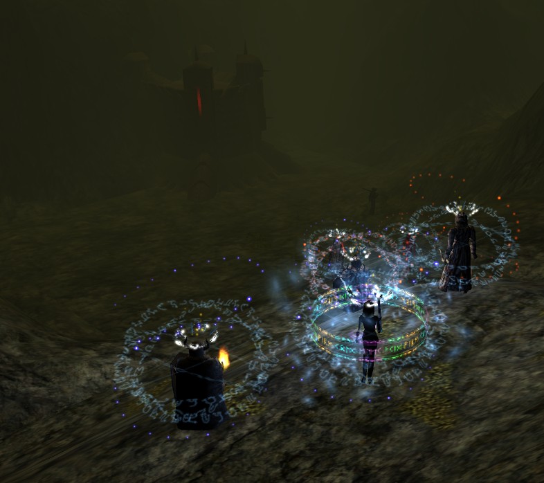 A gloomy castle in the fog high in the mountains on Belinara