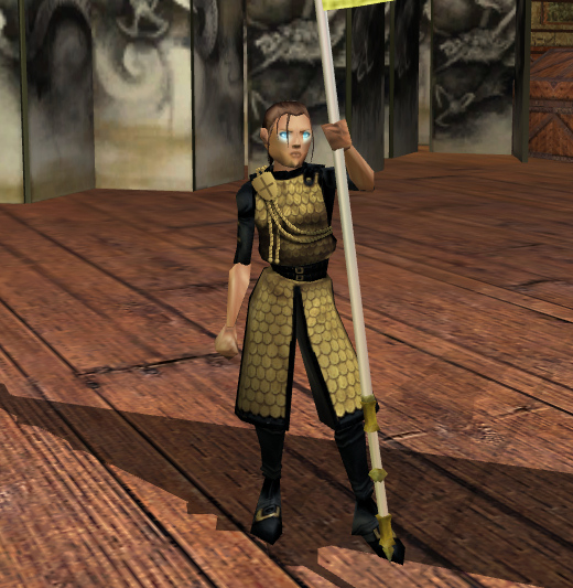 I was playing around with an image of Jennara and added a quick shield and some ropes as a rank insignia. There are two ropes because she is a Section Commander. In the system I imagined, Unit Captains would have one rope, and Knights just the shield. Division Commanders would have a third rope, and the higher positions some extra doodad to mark them.