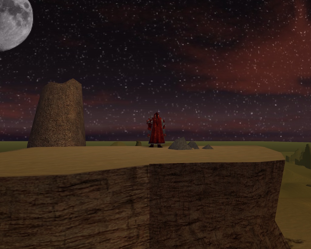 Sunspear Castle at night. Orn, full in the sky, basking the castle in a wh